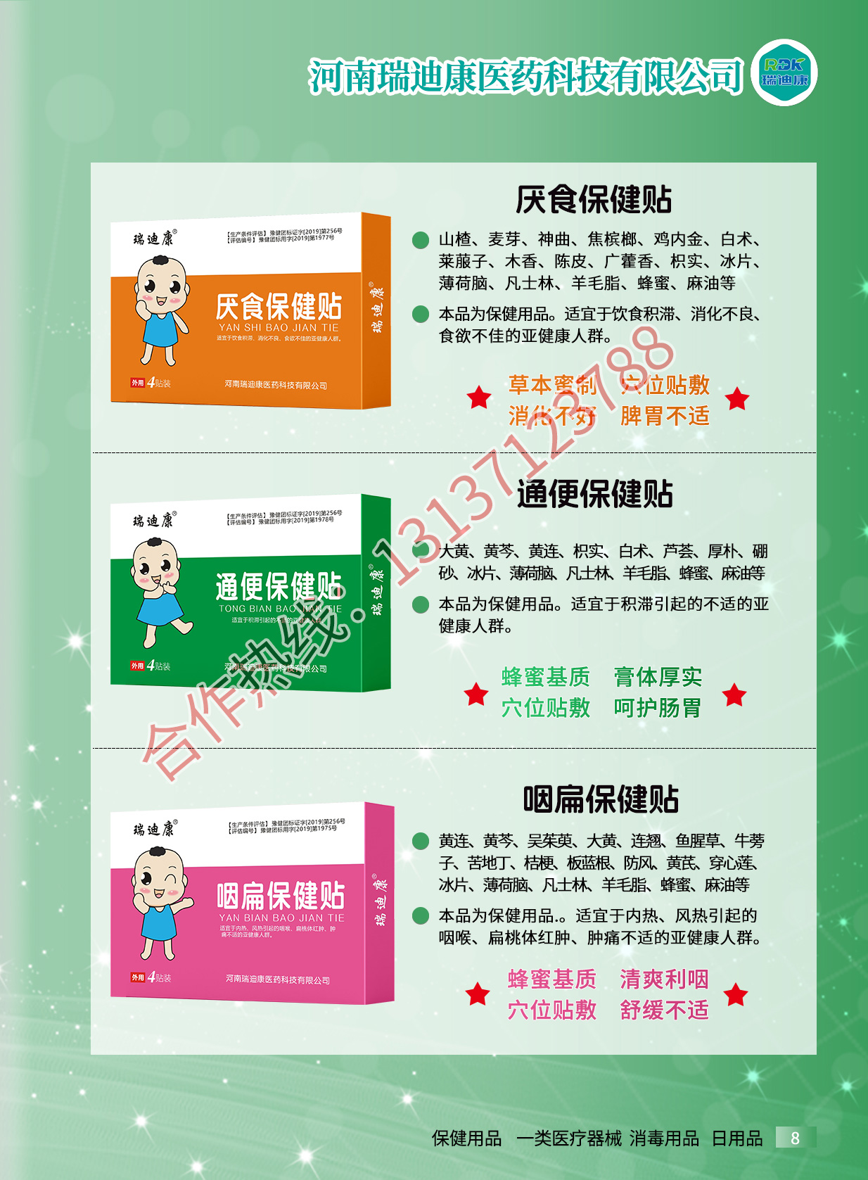 瑞迪康外用疼痛產(chǎn)品有腰椎疼痛保健貼、筋骨祛痛保健貼、滑膜保健貼、騰克寧筋骨疼痛保健液、艾灸保健液、騰克寧穴位壓力刺激貼、瑞迪康穴位壓力刺激貼、姜黃三七貼、紅花三七貼、血竭三七貼等產(chǎn)品。源頭廠家,資質(zhì)齊全,支持一件代發(fā),貼牌定制,來樣加工。適用多種渠道:實(shí)體店、線上線下、電商直播、社群。合作熱線:13137123788...